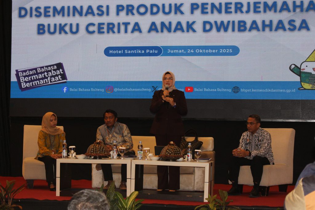Balai Bahasa Provinsi Sulawesi Tengah melaksanakan kegiatan Diseminasi Produk Penerjemahan Buku Cerita Anak Dwibahasa pada Jumat, 24 Oktober 2025, di Hotel Santika Palu. Kegiatan ini dihadiri oleh 35 penulis buku cerita anak dwibahasa tahun 2025 dari berbagai wilayah di Sulawesi Tengah, serta tamu undangan dari berbagai unsur masyarakat, antara lain komunitas literasi, Taman Baca Masyarakat, KKG, MGMP, Dinas Pendidikan dan Kebudayaan Kota Palu, BPMP Sulteng, BGTK Sulteng, dan sejumlah awak media.